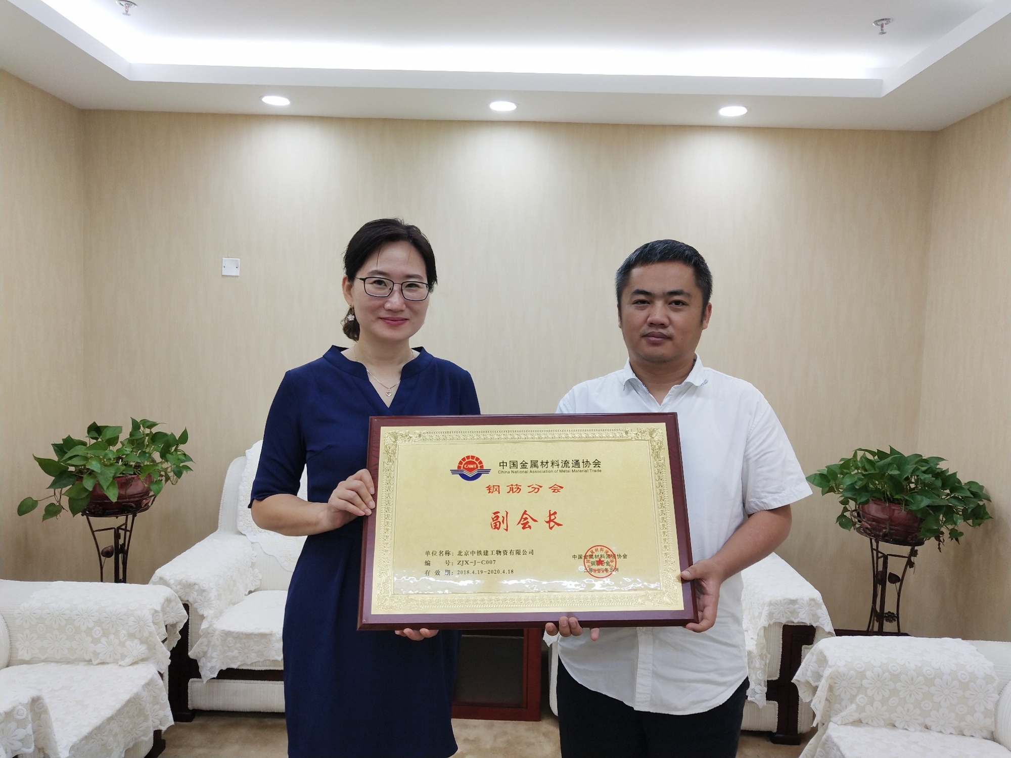 李艳与中铁建工物资公司副总经理孙跃森就目前施工企业钢筋集中加工配送所面临的问题和困难,下一步协会如何更好地对接终端企业和政府部门并建立合作关系等问题进行了探讨。