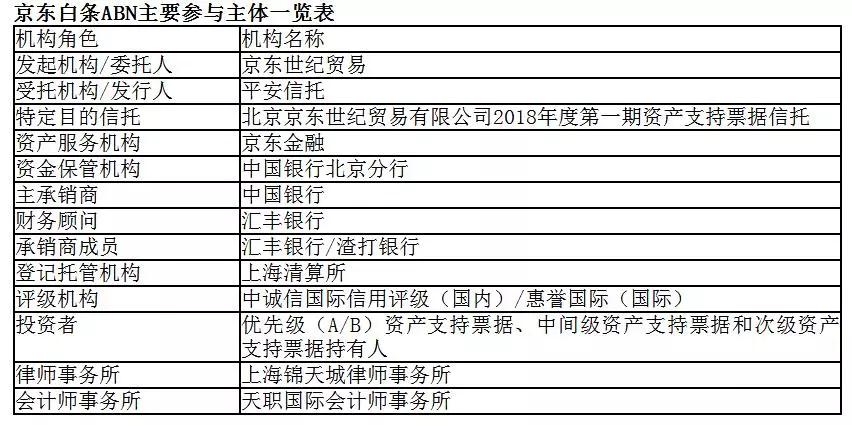 本次交易基础资产为京东世纪贸易将其持有的京东白条应收账款资产信托给平安信托,设立“北京京东世纪贸易有限公司2018年度第一期资产支持票据信托”。平安信托以该信托财产为基础发行固定利率的4档产品。