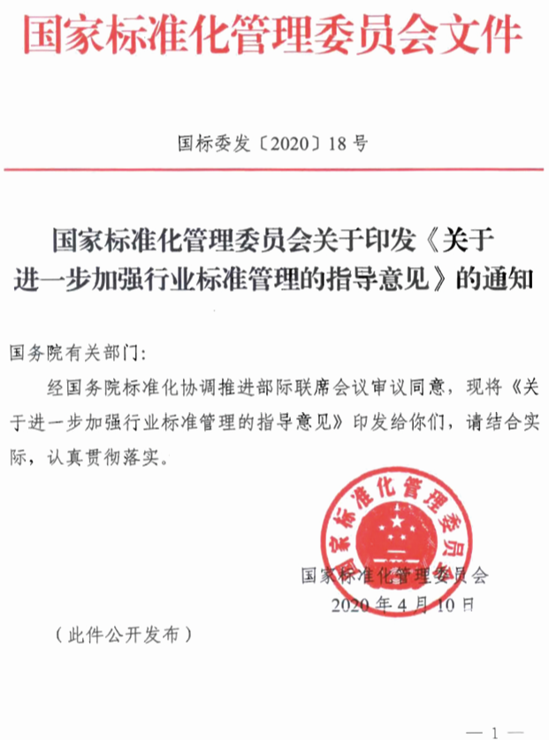 2020年4月10日,为适应我国经济社会高质量发展的需求,根据《中华人民共和国标准化法》和国务院印发的《深化标准化工作改革方案》要求,加快建立协调配套、简化高效的标准体系,充分发挥行业标准的技术支撑作用,国家标准委印发了《关于进一步加强行业标准管理的指导意见》。为此,《中国标准化》杂志社采访了国家标准委相关负责人,以及时解读行业标准有关政策规定。