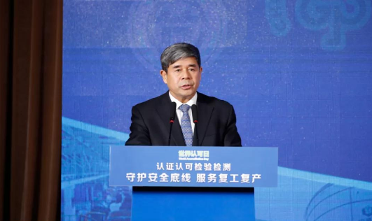 市场监管总局认证监管司司长刘卫军主持活动并发布质量认证统计数据及服务疫情防控和复工复产情况