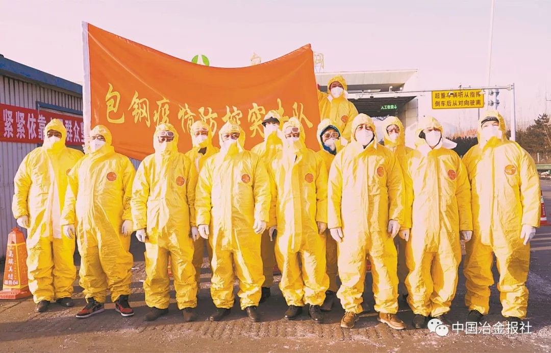 2020年2月8日零时起,京藏高速公路包钢出口作为货运应急车辆通道开通。该高速公路出口是包钢生产物资供应的重要通道,开通后,从这里进出的车辆的登记、人员测温等防控工作由包钢承担。包钢迅速组建起疫情防控青年志愿者突击队,分班开赴该高速公路出口,守护包钢生产物资道路的畅通。(图为包钢疫情防控突击队队员合影。)