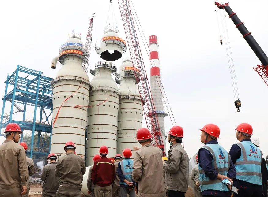 湛江钢铁:球团除尘超低排放改造项目正式开工 4月14日下午15点18分,伴随着一声震天的轰鸣声,青烟从打桩机桩头上方冒出,湛江钢铁球团除尘超低排放改造项目成功打入第一根管桩,标志着工程正式开工。 此工程主要施工内容为新建一套袋式除尘系统并更换部分原除尘管道,同时通过加强密封、设备升级方式,对抑尘系统进行改造,最终达到超低排放要求,满足广东省颗粒物排放限值为10mg/Nm3要求。 该项目施工准备时间短,工程量较大,涉及桩基工程、土建、钢结构、工业管道、设备安装、电气安装等多个专业,中冶宝钢抓时间、保节点,精心筹备,严密部署,攻坚克难、积极协调各方资源,确保项目圆满完成。 柳钢:广西钢铁2号高炉炉顶五通球顺利安装就位、中金镍铁项目炼铁系统热风炉顺利封顶 防城港钢铁基地2号高炉炉顶五通球顺利安装就位 4月11日9时58分,柳钢防城港钢铁基地炼铁2号高炉炉顶五通球顺利安装就位,这标志着防钢2号高炉进入炉顶结构安装收尾完善阶段。 据了解,高炉五通球的就位是高炉安装的关键节点,高炉五通球由12块弧形板组成,重量约40吨,安装高度90米,是高炉粗煤气除尘的重要连接部件,为吸收高炉炉壳的热膨胀和减小煤气下降管作用力起到平衡的作用,同时在五通球的最高点设有煤气放散阀,以达到控制炉顶压力及休风时排放煤气的目的。高炉五通球定位安装,属于高炉施工领域难度较大的技术,它有效地解决了高炉上升管只有起点没有终点问题,起到高炉管系承上启下的作用,确保了粗煤气系统整体安装质量。 中金镍铁项目炼铁系统热风炉顺利封顶 4月10日,柳钢中金镍铁冶炼项目高炉热风炉全部完成吊装就位,此次热风炉炉壳封顶为热风炉炉内砌筑关键节点,为后续建设创造了良好的条件。 高炉热风炉是炼铁厂高炉主要配套的设备之一,一般一座高炉配3~4座热风炉,热风炉的作用是为高炉持续不断的提供1000度以上的高温热风,是完成燃烧过程与传热过程的热工装置,通过高炉煤气的燃烧来预热热风炉内的耐火砖,随后把空气通入热风炉内加热,送入高炉,提高风温是增加喷煤量、降低焦比、降低生产成本的主要技术措施。 徐钢:三期炼钢连铸工程主控楼主体结构封顶 4月16日上午,徐钢三期炼钢连铸工程主控楼主体结构封顶,比原计划提前4天。 徐钢三期炼钢连铸工程炼钢主控楼全长92米,宽10米,三层钢筋混凝土框架结构,总高18.3米,首层层高6.47米,一层为高低压配电室,二层为电缆夹层,三层为主控室及办公室等。 该项目由中国十七冶集团承建,为实现中控楼主体结构施工节点目标,项目部积极面对疫情后复工人员不足、时间紧、任务重等困难,充分落实准备工作,合理调配人员,强化现场安全管控等有效措施,开展“流水施工作业”确保工程顺利推进。