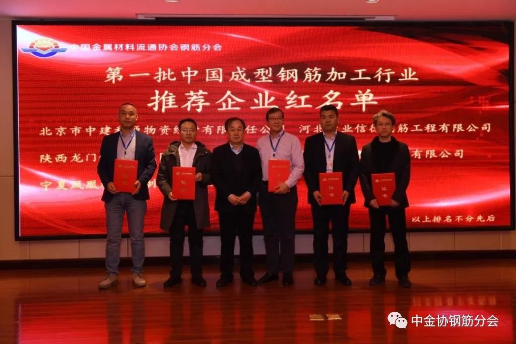 为助推成型钢筋行业向高质量、规范化发展,峰会期间发布了“第一批中国成型钢筋加工行业推荐企业红名单”。北京市中建利源物资经营有限责任公司、河北敬业信德钢筋工程有限公司、陕西龙门钢铁(集团)有限责任公司、韩城涵大智能加工有限公司、宁夏凤凰城智能制造有限公司成为第一批红名单推荐企业。中金协钢筋分会会长单位、河钢集团销售总公司副总经理王晓国为上述企业颁发了推荐证书。