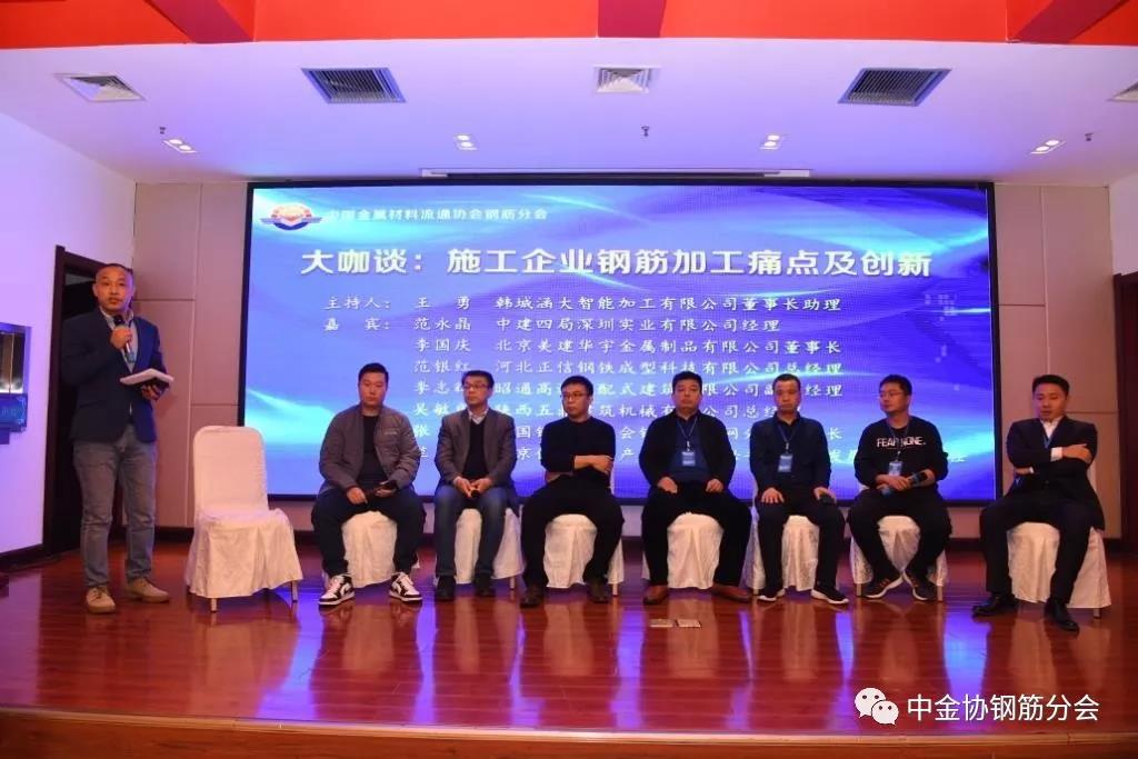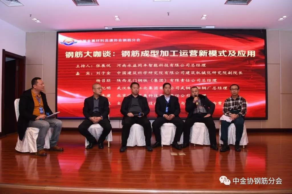 在“钢筋大咖谈”环节,中国建筑科学研究院有限公司机械化研究院副院长刘子金、陕西龙门钢铁(集团)有限责任公司总经理杨召朋、武汉钢铁江北集团有限公司武钢汉阳钢厂总经理张纪明、北京迈思发展科技有限责任公司总经理郭冬建、全联城市基础设施商会建设与材料设备分会常务副秘书长孙凯就“钢筋成型加工运营新模式及应用”这一话题展开了激烈的讨论和观点碰撞。河南永益同丰智能科技有限公司总经理张展悦主持本环节。