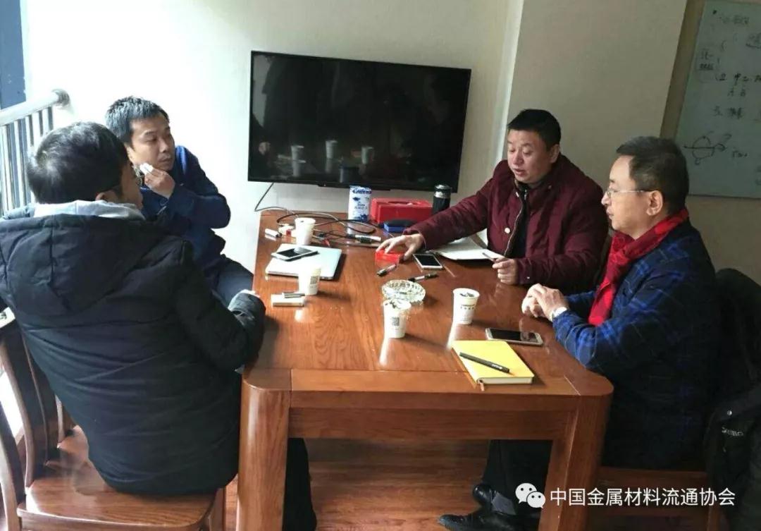 2018年1月13日下午,中国金属材料流通协会副会长兼秘书长陈雷鸣,赴副会长单位杭州高达软件系统股份有限公司走访调研,与副会长、高达公司董事长李七生、杭州信义达数据科技有限公司总经理陈琳、副总经理沈伊宁,就“全国金属材料企业信用查询与综合服务系统”建设、搭建银行与钢铁行业企业融资服务平台等问题进行了深入探讨。